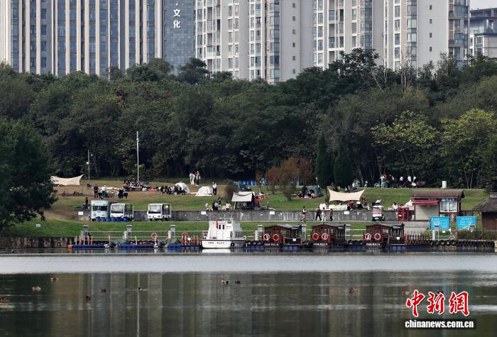 11月8日,4川省成都邑青龙湖干天花园的白枫、梧桐等树木褪来绿衣,换上彩妆吸收市平易近前去赏春。图为市平易近正在青龙湖畔露营戚忙。中新社记者 王磊 摄